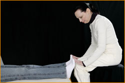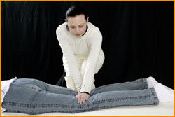 ![]() Position 18: Hände schräg hintereinander in die Kniekehlen |