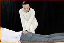 ![]() Position 13: Hände schräg hintereinander auf die oberen Schulterblätter |