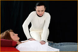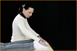 ![]() Position 8: Eine Hand zwischen die Brüste – die andere Hand quer darunter (T-Form) |